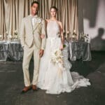 Olijfgroen trouwpak met een moderne pasvorm en stijlvol gilet. De warme, natuurlijke tint zorgt voor een eigentijdse en verfijnde look — ideaal voor de bruidegom die understated maar stijlvol wil opvallen.